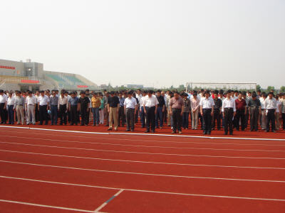 5月19日下午14时28分起,我校党政机关全体人员、教师和学生等分别在运动场、教室、实验室、有关场所默哀3分钟。(宣传部 任苔蓉/文 王军/摄  办公室 李国柱/摄  李广福/审)