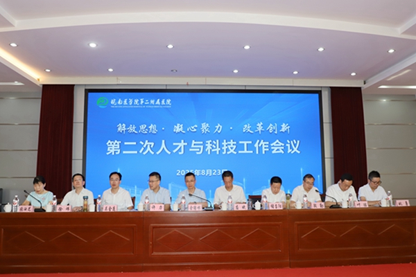 为牢固树立人才是第一资源、科技是第一生产力的理念,深入实施“人才兴院”“学科强院”战略,8月23日上午,第二附属医院在5号楼四楼会议厅召开第二届人才与科技工作会议。学校党委常委、副院长余结根出席会议,医院领导班子成员,临床、医技、职能科室负责人,医疗、护理代表,教师代表,科研代表,博士(含在读)以及近三年引进的高层次人才120余人参加会议。会议开幕式由第二附属医院党委副书记、副院长(主持行政工作)许力主持。