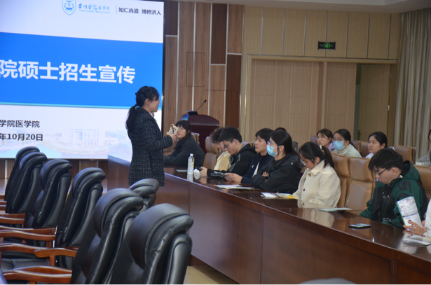 本次会议内容务实、信息丰富,使两校对合作方向与招生政策有了更清晰的把握。通过深入交流,不仅为校际之间的协作与人才共育搭建了广阔平台,也为我校学生创造了更多升学选择。双方将以此次活动为起点,持续深化交流合作,并为区域医学院校间的协同发展与研究生培养工作提供可借鉴的思路与经验。(华钰晨、项琪惠/文  华钰晨/摄)