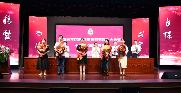 党委书记夏劲松代表校党政向全校教职医护员工表示节日的问候,向受到表彰的同志表示热烈的祝贺,向支持学校事业建设和发展的离退休老同志和30年教育工作者表示崇高的敬意。她指出,学校坚持以习近平新时代中国特色社会主义思想和党的二十大精神为指导,坚持立德树人根本任务,坚守为党育人、为国育才的初心使命,锚定更名大学、审核评估和博士学位授予单位立项建设目标任务,学校发展取得显著成绩,涌现出一批爱岗敬业、甘于奉献、改革创新的先进典型。她强调,全校上下要向受表彰的教师学习,学习他们对党忠诚、信念坚定的政治品格,扎根讲台、潜心治学,甘为人梯、诲人不倦的奉献精神和自我革新、终身学习、精益求精、勇攀高峰的创新精神。