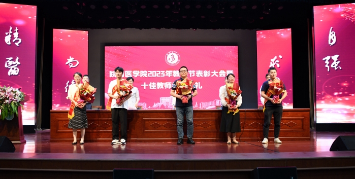 弘扬尊师重教传统,强化榜样引领感召,在全国第39个教师节来临之际,9月8日下午,我校在大学生活动中心礼堂召开第39个教师节表彰大会暨“十佳教师”颁奖典礼,对一年来取得优秀成绩教师、“十佳教师”提名人选和30年教育工作者进行表彰,并对学校首届“十佳教师”获得者进行颁奖。在校校领导夏劲松、姚应水、贾贤燕、王保中、韩永升出席表彰大会。大会由党委副书记、院长姚应水主持。