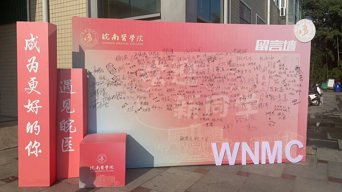 厚植爱校情怀。制作“我爱皖医”拍照打卡点、楼梯文化墙、签名墙、带有皖医元素的文创产品等,将爱校荣校教育融入迎新环节,在新生心中刻下“有”的种子。