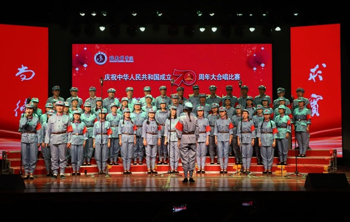 嘹亮歌声颂祖国,深情祝福庆华诞。为庆祝新中国成立70周年,充分激发爱国热情、广泛凝聚奋进力量,营造不忘初心、牢记使命、高举旗帜、砥砺前行的浓厚氛围。9月28日下午,我校在大学生活动中心举办了题为“我和我的祖国”庆祝中华人民共和国成立70周年大合唱比赛,校党委书记章尧,党委副书记、院长廖圣宝,纪委书记刘人人,副院长吴金月、郑兰荣参加比赛。比赛共分三个篇章:开天辟地篇、春天的故事篇和走进新时代篇,12个分工会轮番登台、倾情放歌,用嘹亮的歌声向祖国表达崇高的敬意,为新中国成立70周年献上诚挚的祝福。