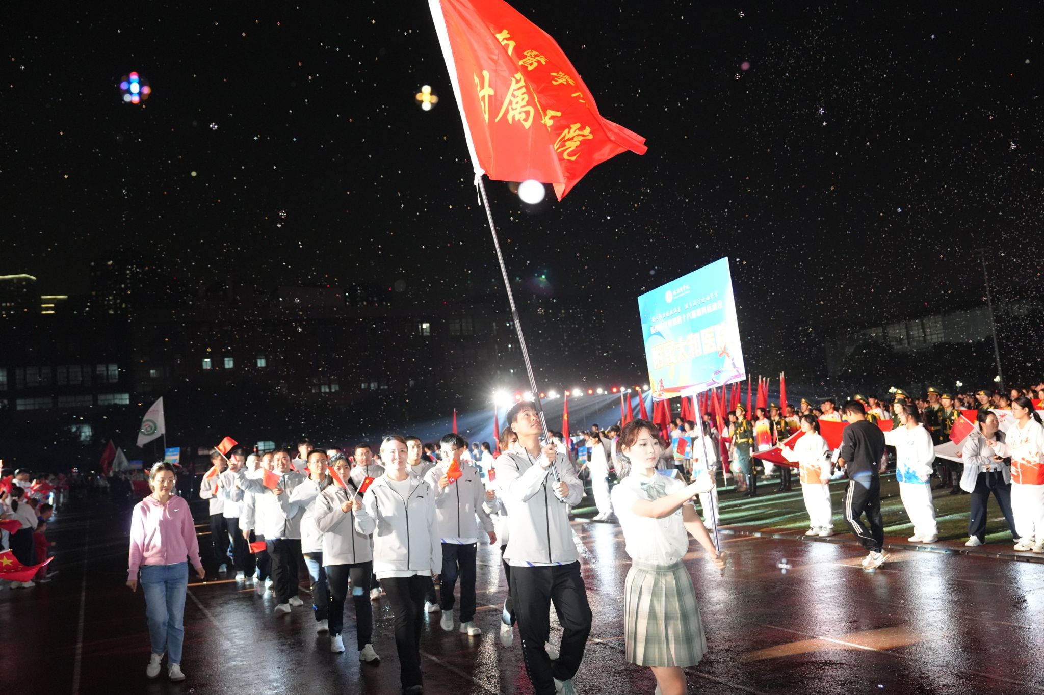 党委副书记贾贤燕致开幕词。她代表学校向为赛事筹备付出心血的全体师生医护员工表示诚挚感谢,向参与开幕式演出的师生致以亲切问候,向即将驰骋赛场的运动员们致以美好祝愿。贾贤燕指出,学校树牢融合育人理念,深化教育教学改革,深入推进以体育智、以体育心、以体育人,学校体育工作蓬勃发展,竞技体育成绩优异。希望同学们充分展现竞技风采,读懂体育背后蕴含的时代意义与人生价值,用勇气挑战不可能,用执着应对不确定,用豁达接纳不完美,望远山而前行,知不足而奋进,努力书写无愧青春、无愧时代的绚丽诗篇。