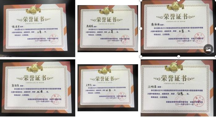 此次夏令营活动,我校选派的作品《医学信息时代》荣获“我与信息素养”创意微视频大赛三等奖,信息素养知识大赛屈居亚军;在小组课题大赛中,芮瑶瑶获二等奖,潘丽丽、陈哲平获三等奖,郭世存、马梦尧、江明菲获优秀奖;在万方杯文献检索大赛中我校获优秀组织奖;吴义苗及朱永利老师获“优秀带队老师”称号。队长江明菲在夏令营中表现突出,获“夏令营优秀营员”称号。本次夏令营活动得到研究生学院的大力支持;吴义苗等老师多次召开营员会议并进行信息素养专题培训;在培训期间储俊杰到现场进行指导。