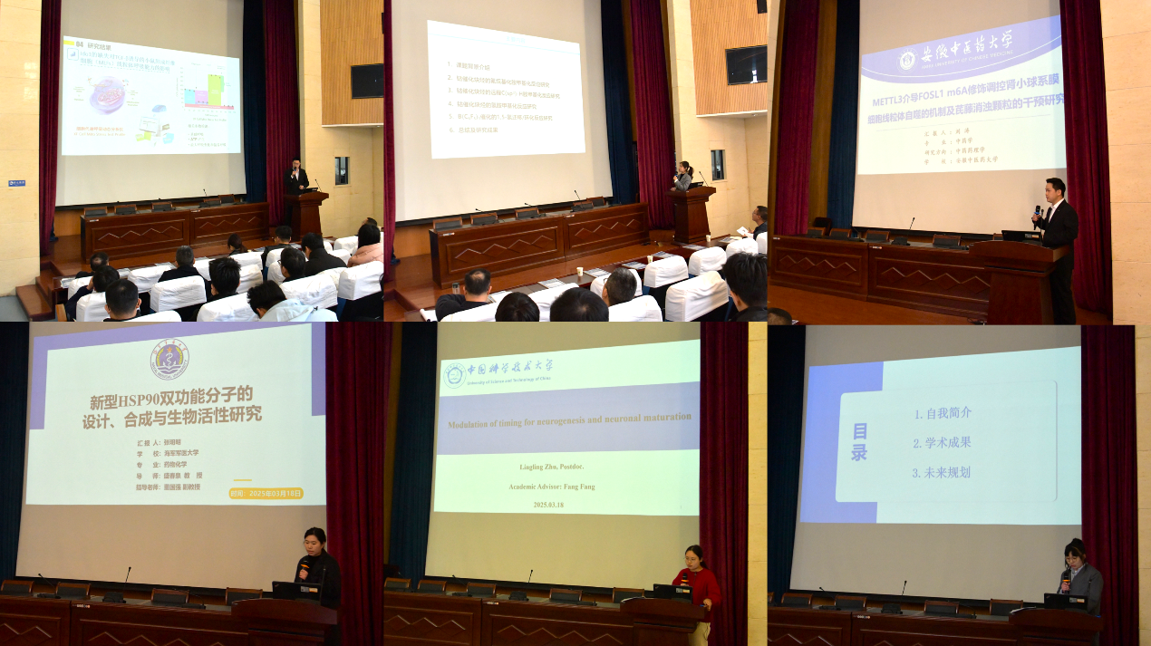 来自中国科学技术大学、中国药科大学等知名高校的6名青年博士围绕药物化学、药理学、中药学等多个学科方向,分享各自的研究成果。随后,与会师生与报告人进行了深入交流研讨,现场学术氛围浓厚。
